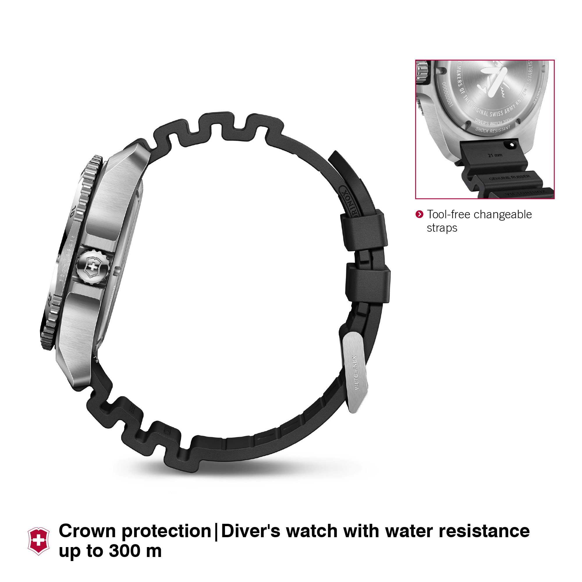 Dare to endeavor with the watch that’s all about forging new frontiers. Building on its Swiss Army Knife DNA, this enhanced design is luxurious yet resolutely masculine. Refined colors and curved indices make a style statement, and bold numerals and good-sized hands offer superb readability. The supple leather strap is finished with a deployment buckle.
