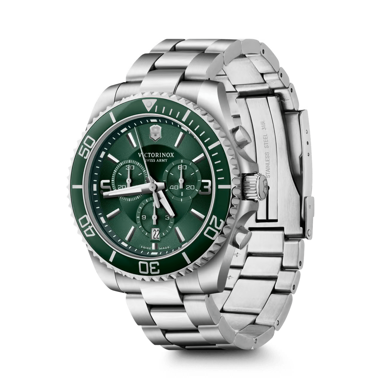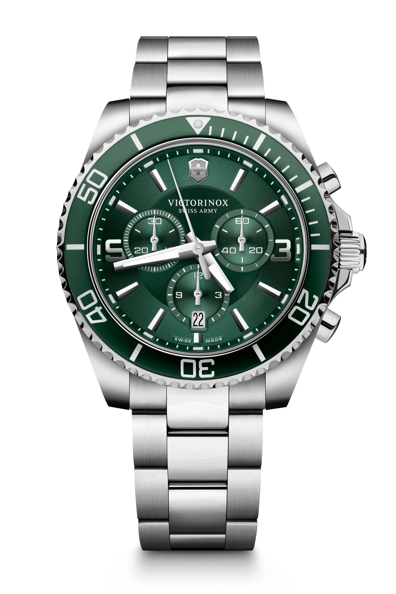 Victorinox Maverick Chronograph 43mm Green Diamond-Cut Dial Coin-Edge Bezel Swiss Quartz Men’s Watch